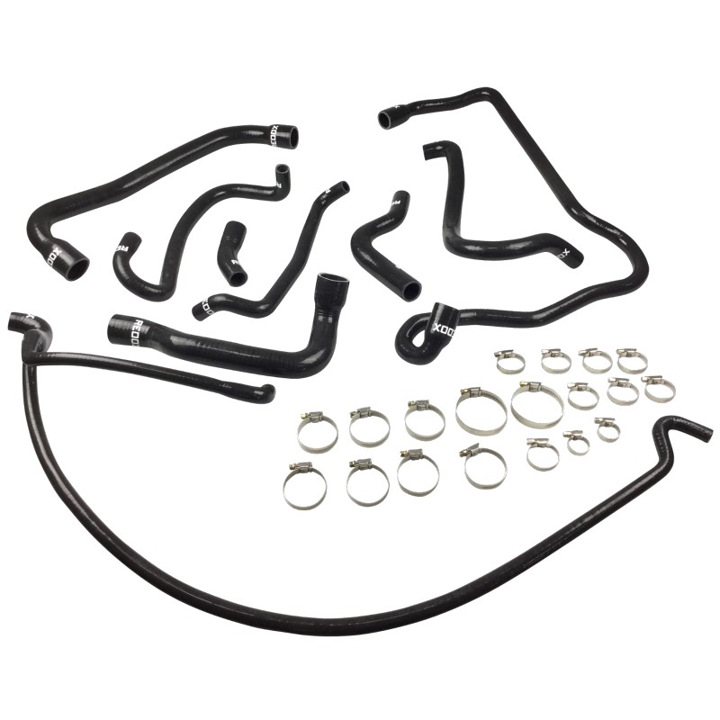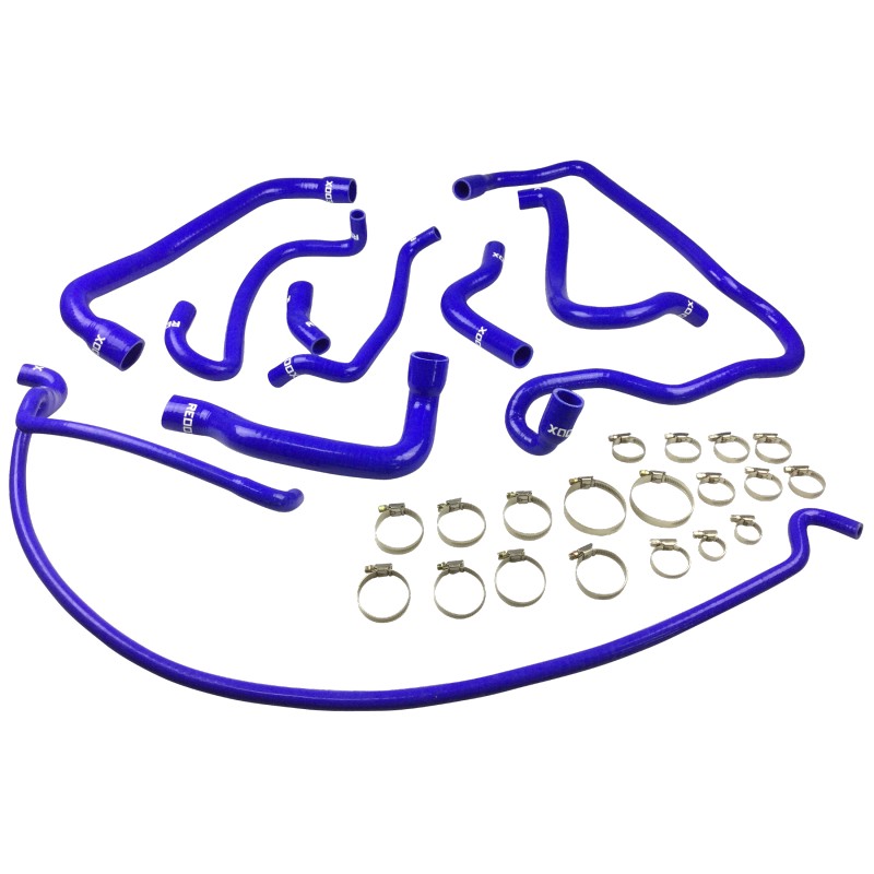 Complete 9-piece reinforced VMQ silicone coolant hose kit for CITROËN BX 1.7 Turbo Diesel (1988-1994). 4mm wall thickness, 3-ply construction, extreme temperature resistance -50°C/+180°C. Direct replacement for original hoses. Clamps included. Lifetime REDOX warranty. Permanent stock, same-day dispatch until 5pm, GLS delivery 24-48h.