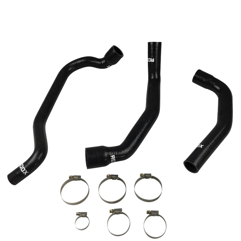 REDOX hoses are manufactured from VMQ silicone with a reinforced 4mm wall thickness in 3-ply construction. This design ensures optimal resistance to extreme temperatures from -50°C to +180°C, as well as excellent pressure resistance in the cooling system. The kit includes all necessary hose clamps for perfect and leak-proof installation.