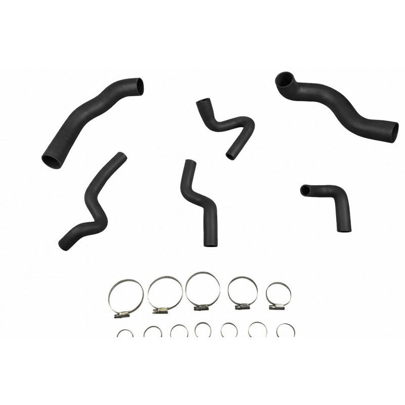 The kit includes all necessary stainless steel hose clamps for installation, guaranteeing perfect sealing and professional fitment. Available in three colors (blue, black, red), this kit installs as a direct replacement for original hoses without requiring any modifications.