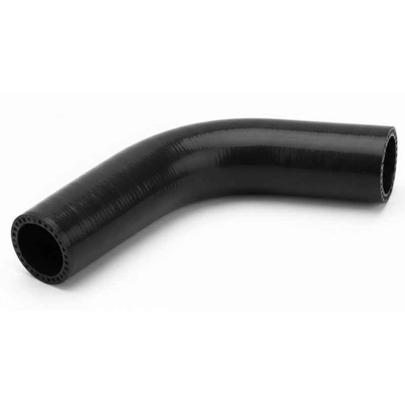 45-degree elbow hose in high-performance NOMEX silicone. 50mm diameter, 110mm length. Extreme thermal resistance up to 260°C. 4-ply Nomex aramid reinforcement. Stainless steel clamps included. Ideal for racing and extreme applications. REDOX lifetime warranty.